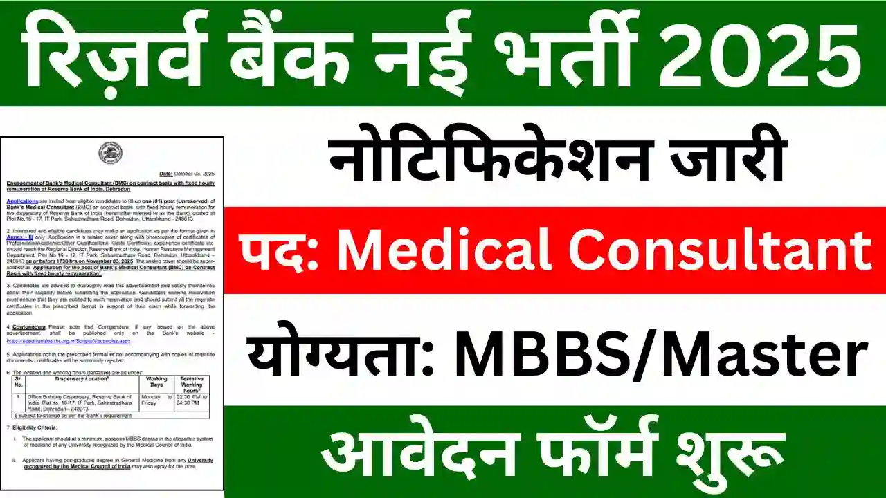 RBI Bank Medical Consultant Recruitment 2025: रिज़र्व बैंक में नई भर्ती, ऐसे करें आवेदन